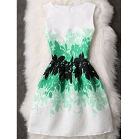 圆领女士花卉印花无袖连衣裙